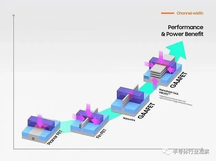 但三星在更先進的節點上看到了追趕的機會,三星3nm芯片率先采用GAA工藝,且領先臺積電量產,成為全球首個量產3nm的代工廠。乘勝追擊,三星電子計劃明年推出第二代3nm工藝,并更進一步放言計劃到2025年達到2nm,到2027年達到1.4nm。